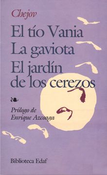 Chejov (29 de enero de 1860 15 de julio de 1904) fue un autor ruso de obras de teatro y narraciones cortas que esta considerado como uno de los mas grandes narradores de la historia. Su carrera como autor teatral produjo cuatro clasicos y con sus narraciones cortas muy consideradas por autores y criticos. Junto a Ibsen y Strindberg, se considera a Chejov como unos de los creadores del modernismo temprano en el teatro. Este volumen recoje tres de sus mejores obras: La gaviota, El tio Vania y El jardin de los cerezos. / Anton Chekhov was a Russian playwright and short story writer who is considered to be among the greatest writers of short fiction. His career as a playwright produced four classics.His best short stories are held in high esteem by writers and critics. In this volume are included three of his best plays.