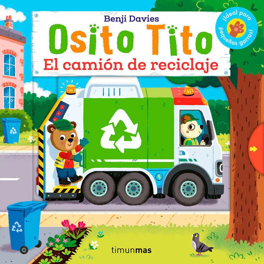 ¿Alguna vez te has preguntado adónde va todo lo que tiramos a la basura? Sube con el Osito Tito al camión de reciclaje para descubrirlo. ¡Ayúdalo a clasificar los residuos y reciclarlos en este divertidísimo libro con mecanismos para estirar! ¡Este libro te necesita! Al girar, deslizar, levantar y mover los mecanismos, las pequeñas manos participan en la historia. Este alto nivel de interacción fomenta el interés de los peques por los libros, una pieza clave para apasionarlos por la lectura. Además, las ilustraciones del multipremiado Benji Davies son adorables y muy detalladas, cosa que permite hacer muchos comentarios sobre lo que está sucediendo dentro de la historia. Un libro ideal para niños y niñas a partir de 1 año. Títulos de la colección de Osito Tito: El gran libro de Osito Tito Osito Tito. Libro y peluche Osito Tito. Juega y construye Osito Tito. ¡Disfrázame! Osito Tito. Mi primer libro de memoria. Animales Osito Tito. Mi primer libro de memoria. Vehículos Osito Tito. Mi primer libro de memoria. Navidad Osito Tito. Mi primer libro de pegatinas. Animales Osito Tito. Mi primer libro de pegatinas. Vehículos Osito Tito. Mi primer libro de pegatinas. ¡Feliz Navidad! Osito Tito. Mi primer libro de pegatinas. Aventuras Osito Tito. Parque de atracciones Osito Tito. ¡Vamos en barco! Osito Tito. ¡Hoy toca pizza! Osito Tito. Estrellas del balón Osito Tito. ¡Todos al tren! Osito Tito. ¡Vamos en avión! Osito Tito. Un día en el castillo Osito Tito. ¡Vamos a construir! Osito Tito. La gran carrera Osito Tito. ¡Manos a la obra! Osito Tito. Emergencia al volante Osito Tito. Vamos de viaje Osito Tito. La casa encantada Osito Tito. Misión espacial Osito Tito. ¡Vamos al zoo! Osito Tito. Aventura pirata Osito Tito. Bomberos al rescate Osito Tito. Un día en la granja Osito Tito. ¡Vamos a jugar! Osito Tito. Aventura submarina Osito Tito. Un día en el cole Osito Tito. Safari de dinosaurios Osito Tito. Vamos al veterinario Osito Tito. Und ía en la nieve Osito Tito. ¡Feliz Navidad! Osito Tito. ¡Vamos de acampada!
