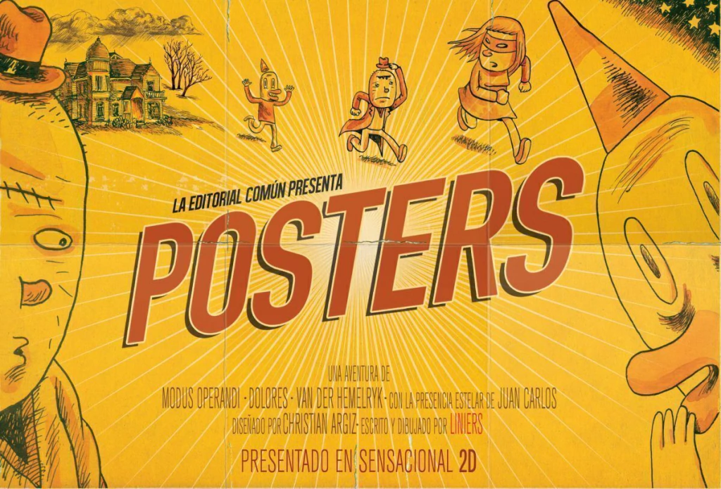 Posters salió en la última página de Hecho en Buenos Aires durante seis años y medio¿ Hice pasear a los tres protagonistas por bosques profundos, por el fondo del mar, por la superficie de la luna y los confines del universo. Dediqué varias páginas a homenajear el arte de los posters de películas, arte que parece estar desvaneciéndose en manos de anónimos departamentos de marketing obsesionados con poner gigantescos perfiles de Tom Cruise. Es así que Saul Bass, Drew Struzan, Juan Gatti, Diego Cabello, Boris Grinsson, Boris Bilinsky, Pierre Étaix, Burt Kleege, Giorgio Olivetti, Albert Kallis, Gerald Scarfe, George Dunning -entre otros anónimos cuyo trabajo sigue presente aunque sus nombres parecen haber desparecido- han ayudado a contar esta historia y a enriquecer las páginas de este libro. Mi agradecimiento a ellos. Liniers