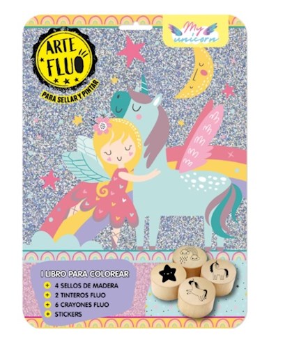 Unicornios (Libro+4 Sellos De Madera+ 2 Tinteros+ 6 Crayones+Stickers) (Arte Fluo) (Blister)